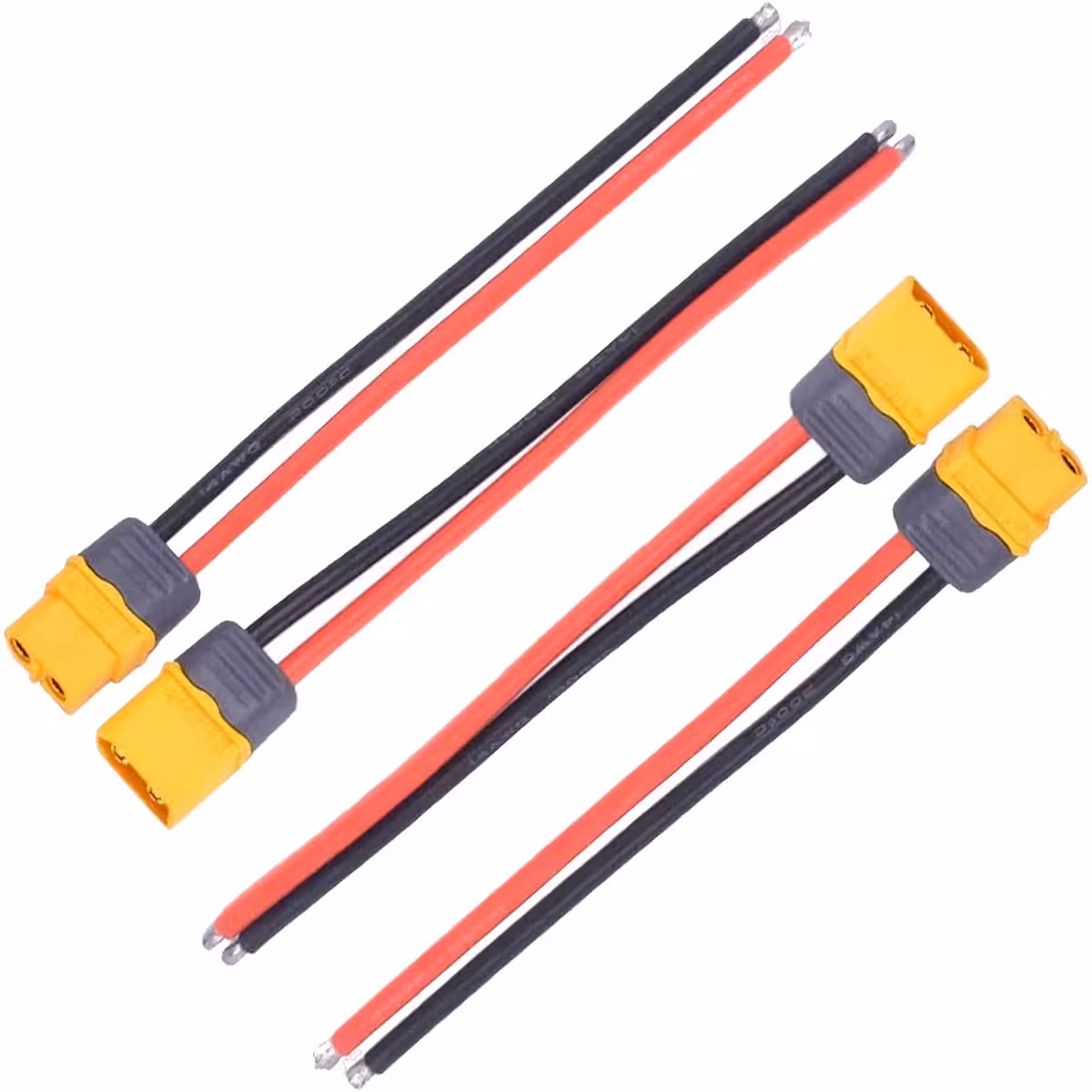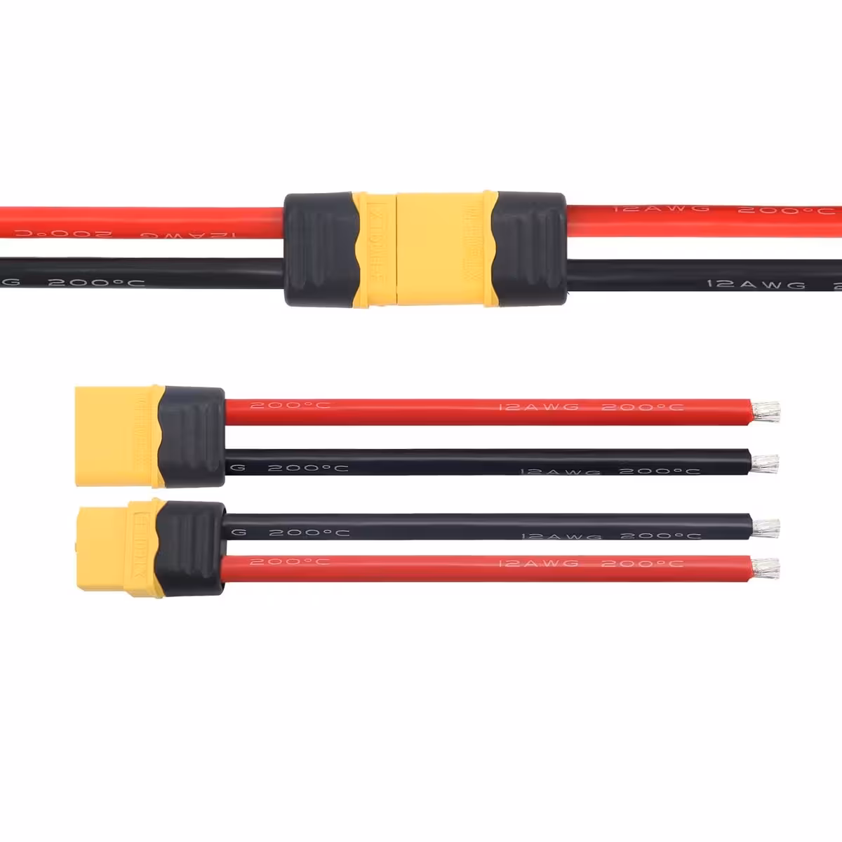Paire XT60H femelle + mâle avec câble silicone épais 12AWG, idéale pour batteries Li-Ion, LiPo, LiFePO₄ et applications à courant élevé : trottinettes, vélos électriques, power packs, drones, RC et UPS portables.