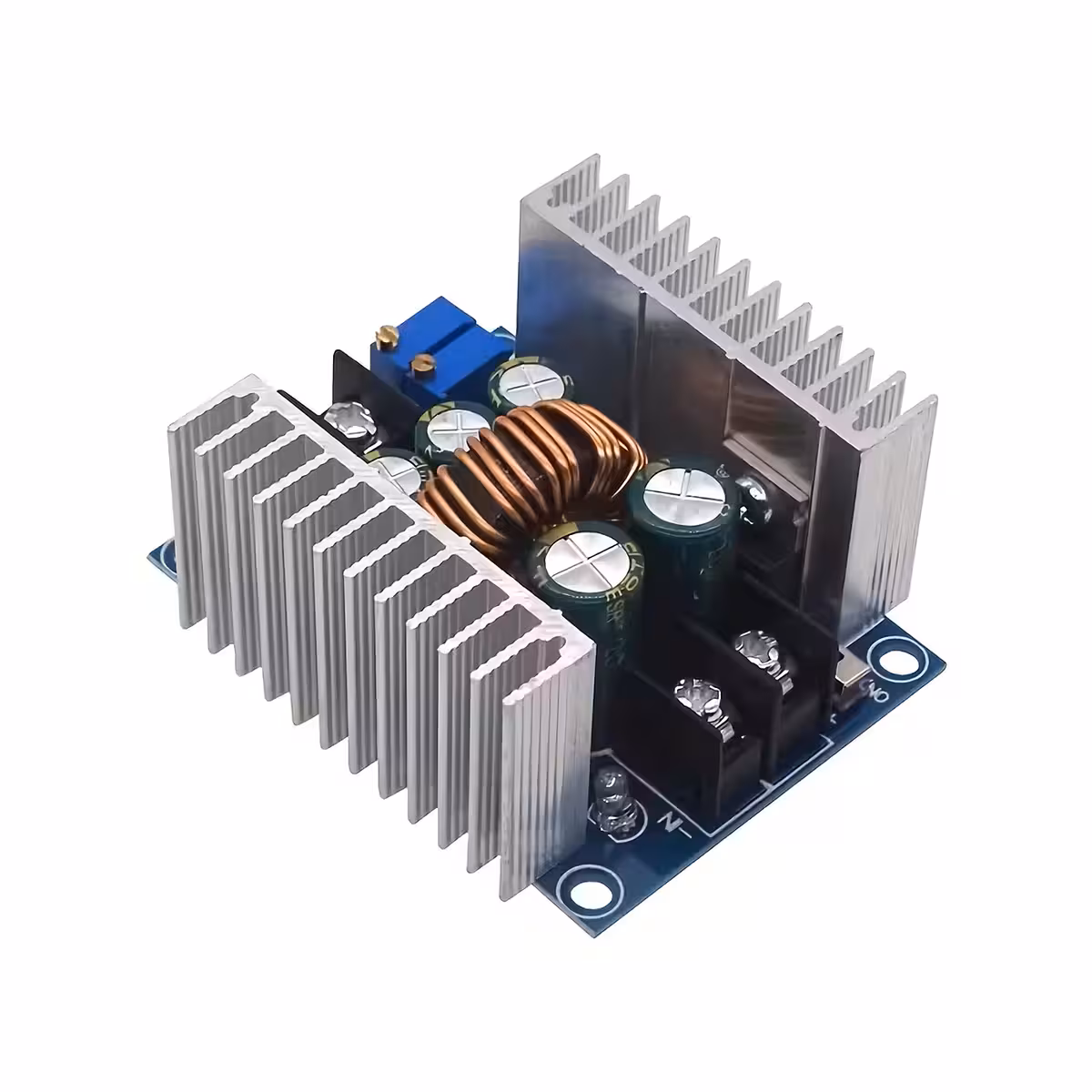Ce module step down 20A 300W (convertisseur abaisseur de tension DC-DC) est conçu pour un réglage précis et efficace de la tension et du courant entre Entrée 6–40V et Sortie 1,2–36V. Il fonctionne en mode CC/CV (Courant Constant / Tension Constante) et offre des protections essentielles pour les applications industrielles, hobby et réparation électronique. Le module intègre des MOSFET dual 75V/80A et des condensateurs low ESR pour stabilité et efficacité jusqu’à 95–96 % (ex. 24V→12V à 20A).