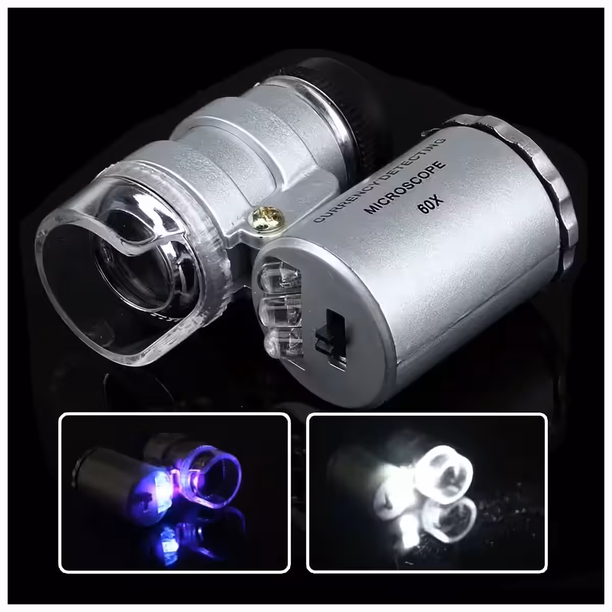 Microscope LOUPE 60x avec LED – appareil pour vérification de billets, bijoutiers, horlogers, lampe UV