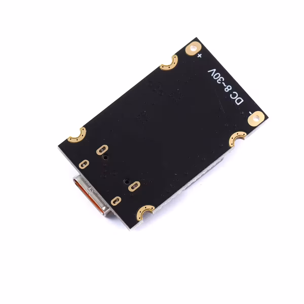 Alimenté par une tension d’entrée comprise entre 8 et 30 V DC, le module ajuste automatiquement la tension de sortie entre 3,3 V et 21 V selon l’appareil connecté, garantissant une charge rapide, stable et sûre via l’interface USB Type-C.