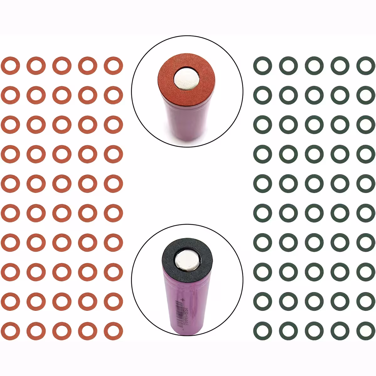 Feuilles isolantes pour accumulateur Li-Ion 18650 – lot de 100 pièces (50 vertes + 50 rouges)