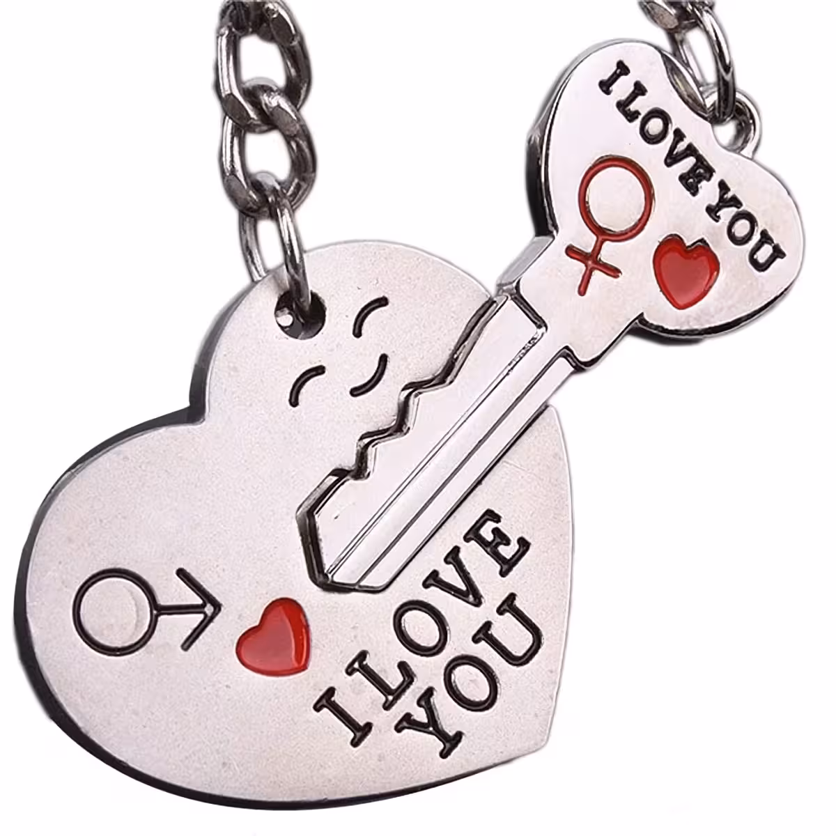 Ce set contient un cœur et une petite clé qui s’emboîtent parfaitement, représentant la connexion unique entre vous. Idéal comme cadeau romantique ou amical, les porte-clés sont fabriqués en alliage de zinc durable, avec des finitions de qualité, résistantes dans le temps.