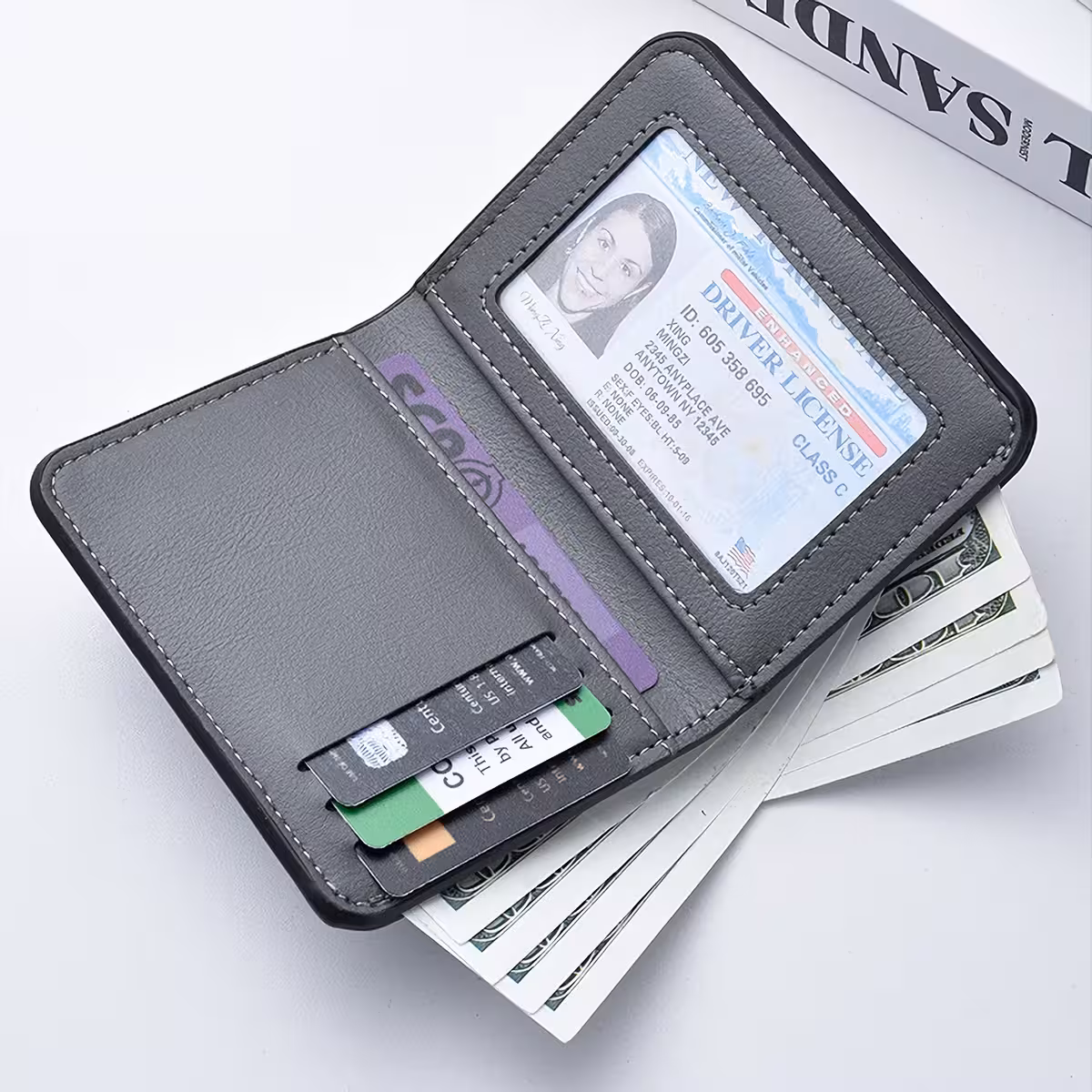 Il est idéal pour cartes bancaires, pièce d’identité, passeport, permis de conduire et billets pliés.