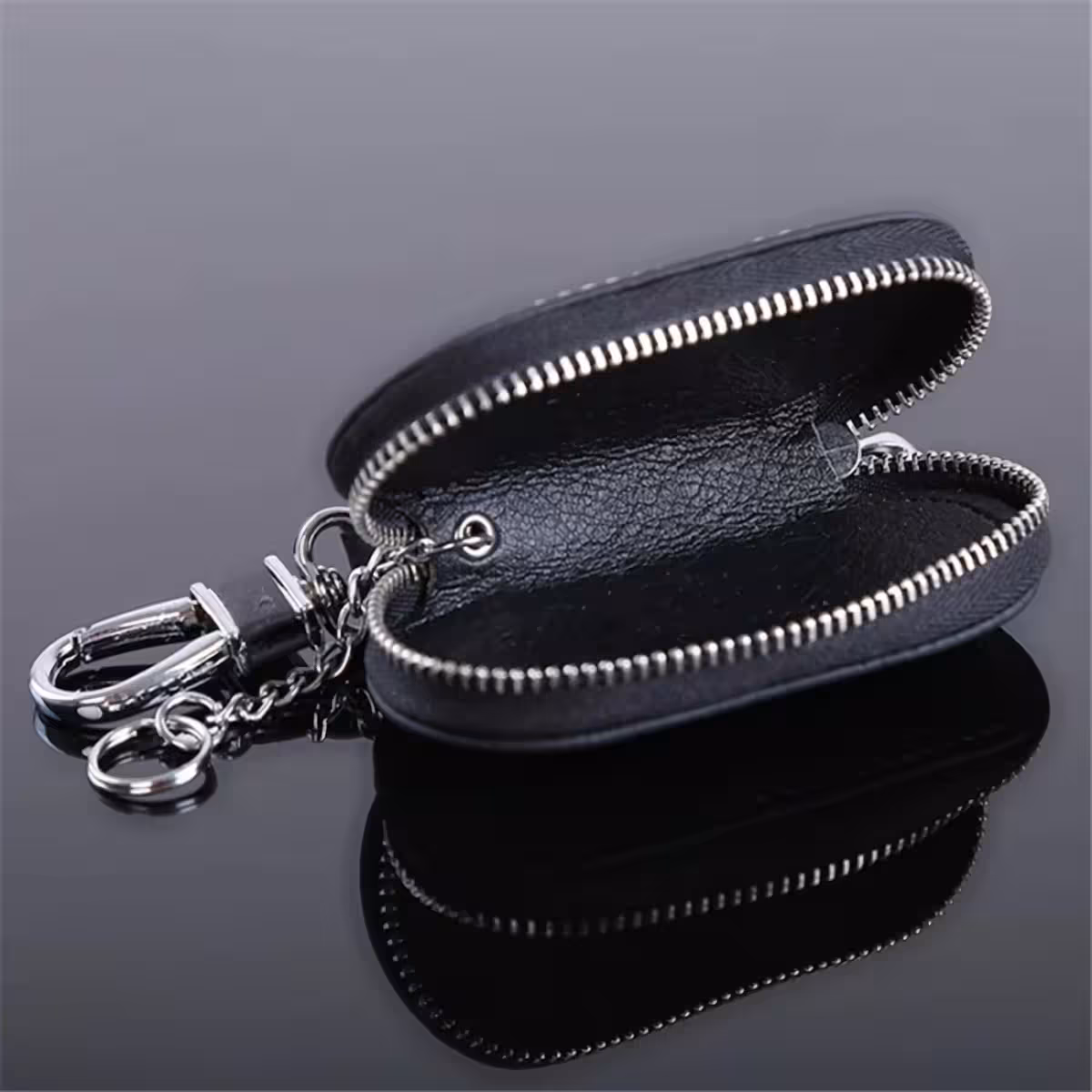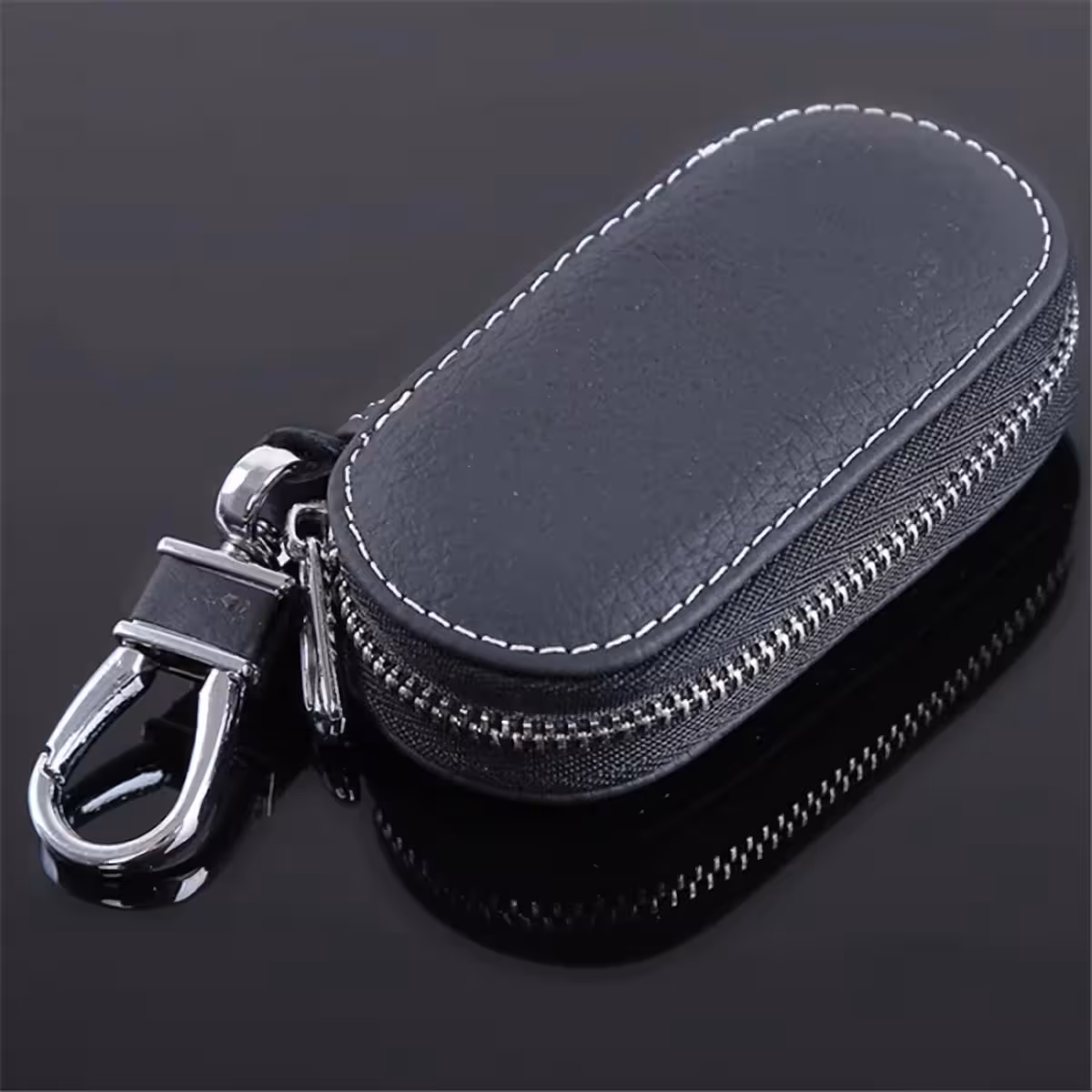 Porte-clés en Cuir pour Voiture – Porte-clés Élégant avec Mousqueton et Fermeture Éclair