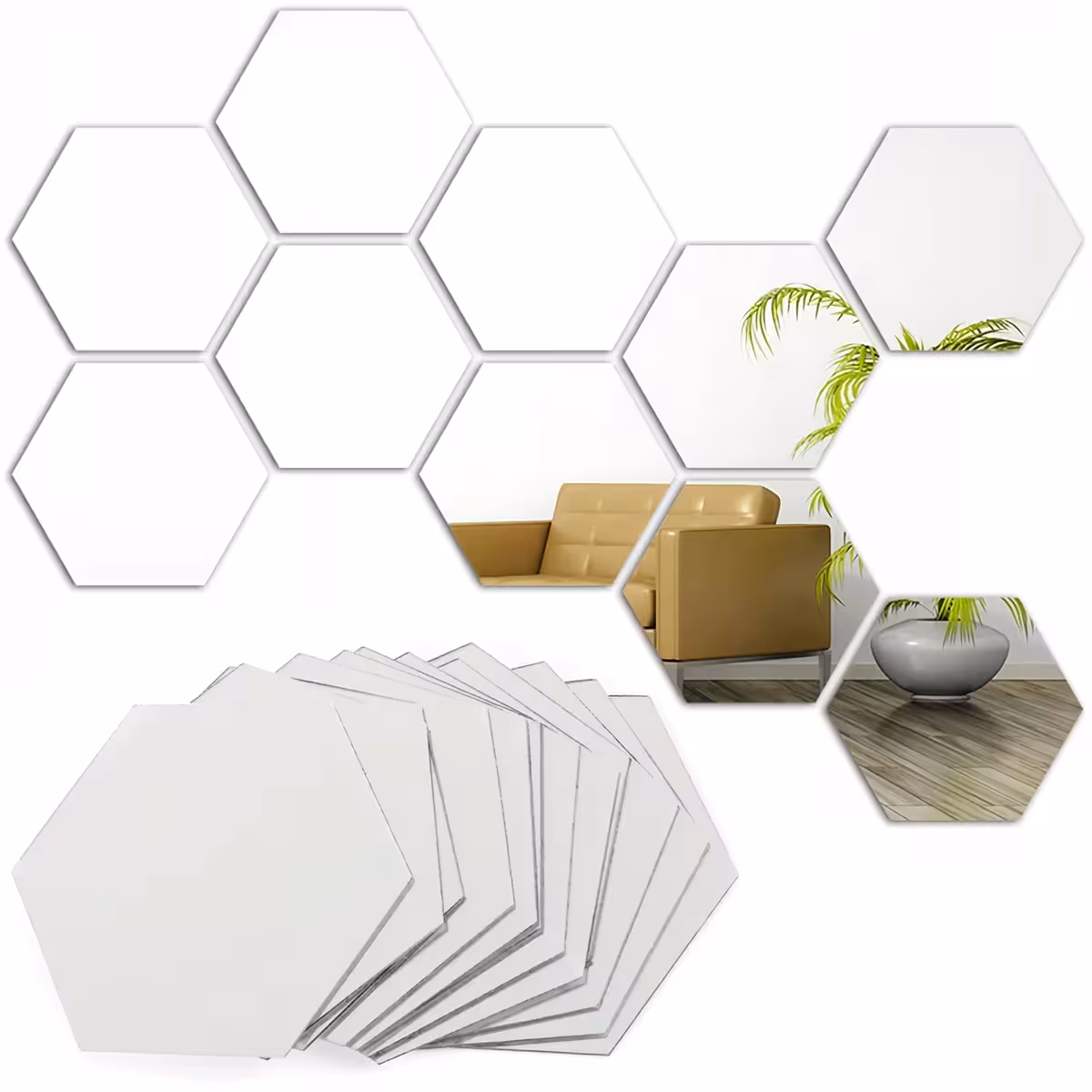 Set de Miroirs Hexagonaux Autocollants Décoratifs – Design Moderne pour Mur