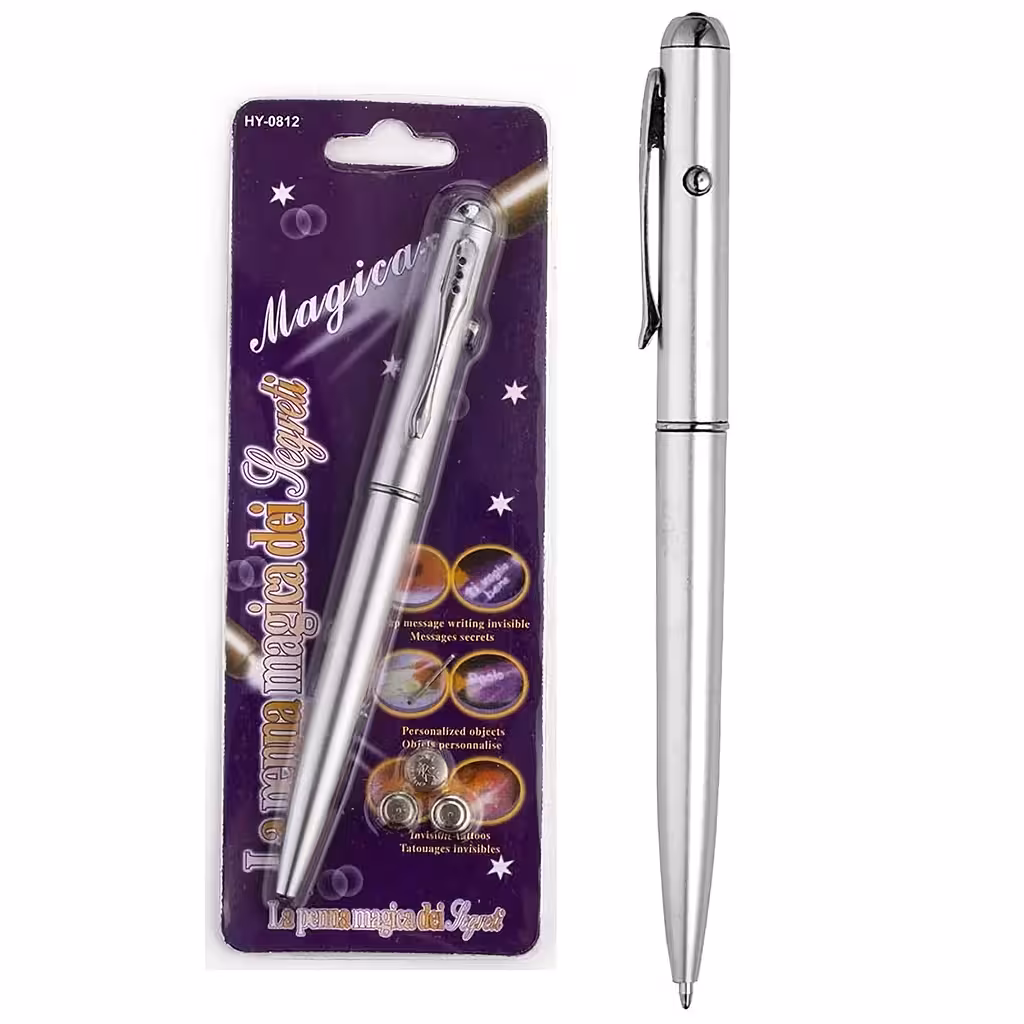 Stylo avec Lumière LED UV et Encre Invisible – Messages Visibles Seulement sous Ultraviolets