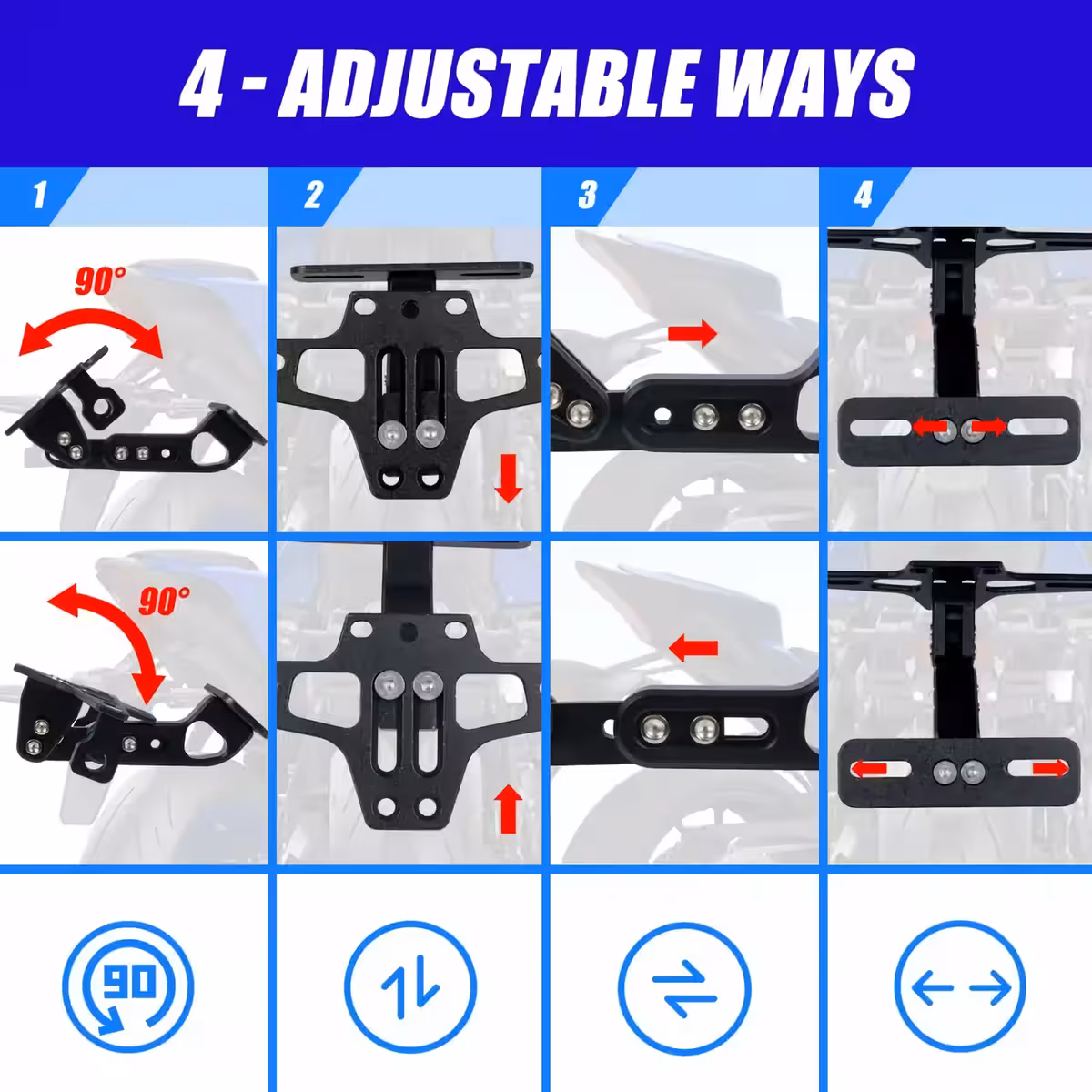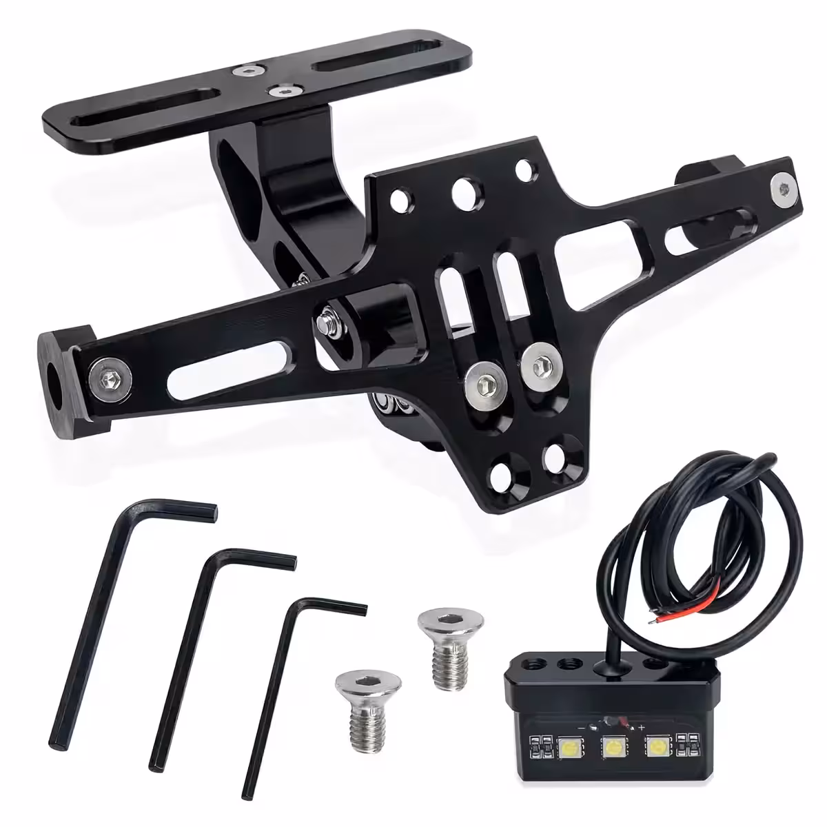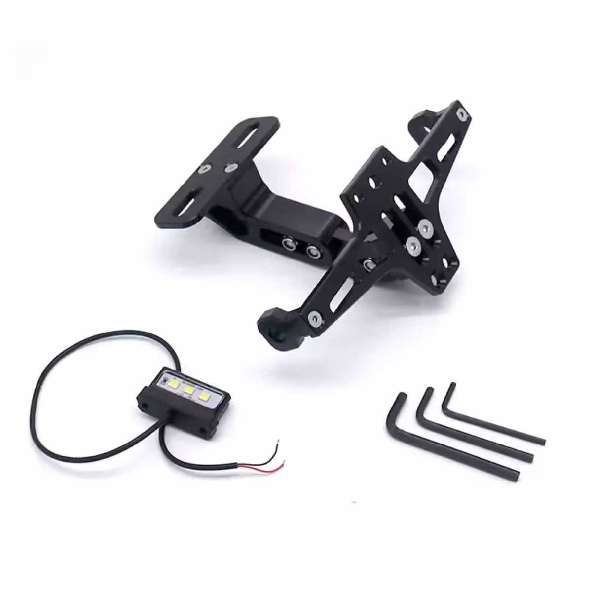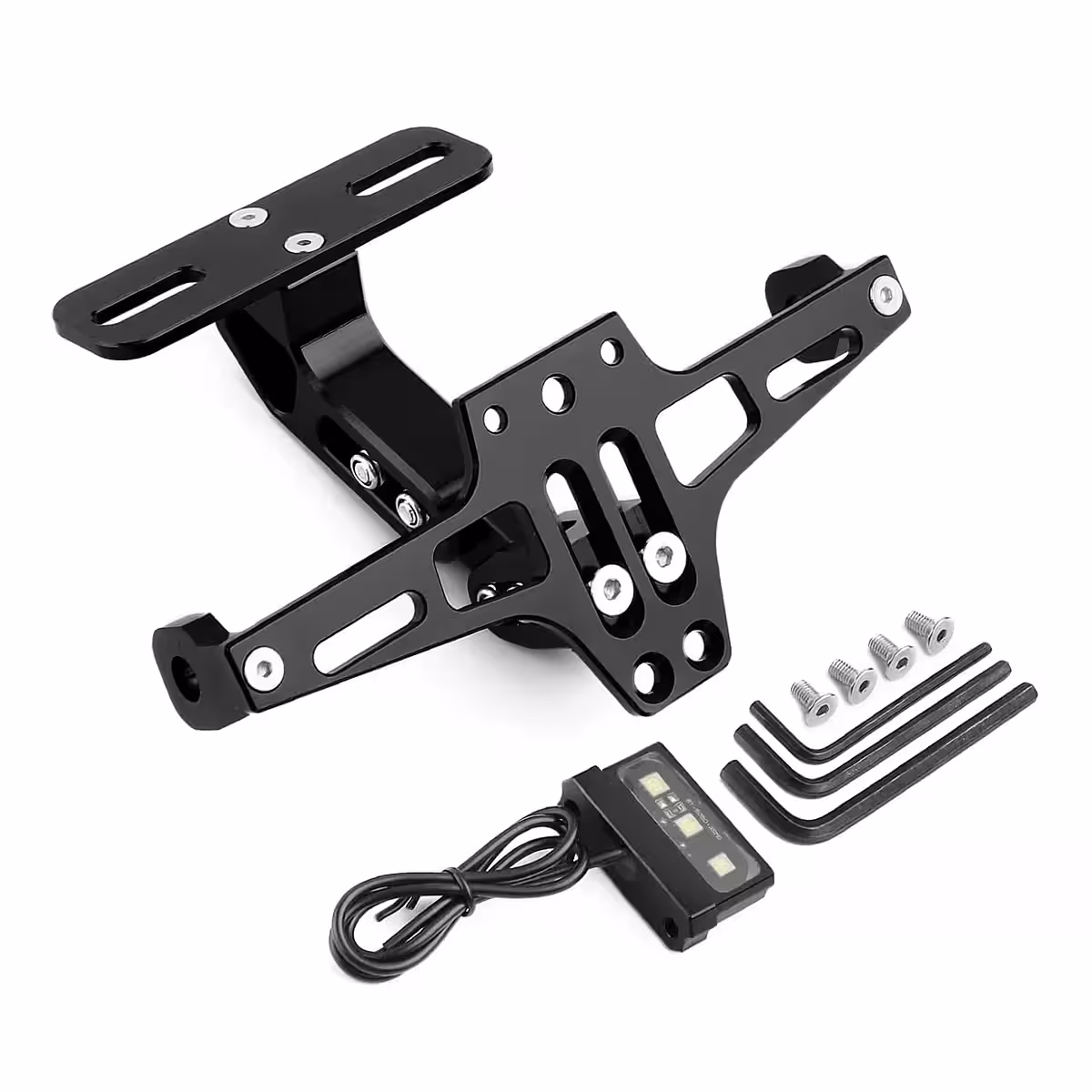 Ce support de plaque moto rabattable est fabriqué en alliage d’aluminium 6063-T6, offrant une excellente résistance à l’usure et aux conditions météorologiques défavorables. Son mécanisme rabattable permet d’ajuster l’angle pour une fixation parfaite, quelle que soit la forme ou la taille de la moto.