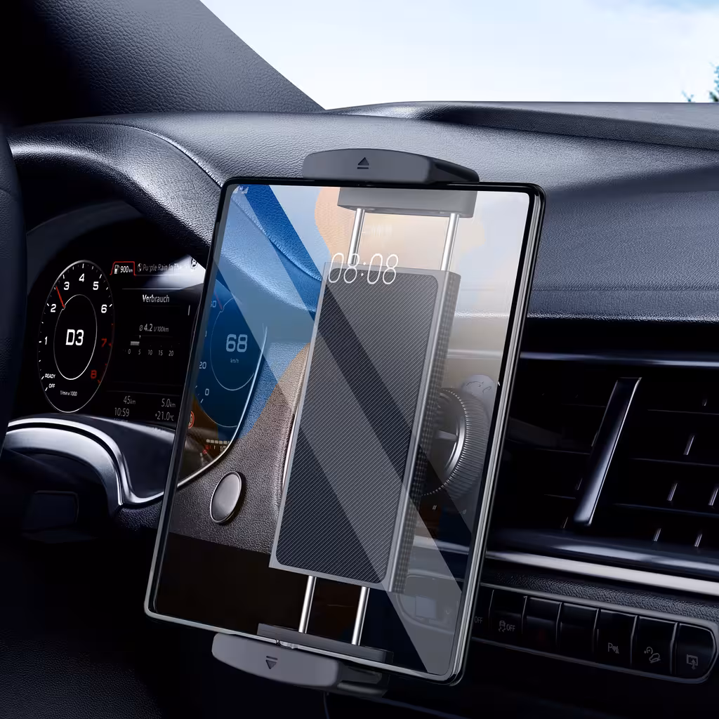 Ce support tablette auto est conçu pour fixer en toute sécurité les tablettes de tailles 7″, 8″, 10″, 11″ et 12 pouces. Grâce à son design ajustable, il assure une prise ferme sans obstruer la visibilité du conducteur ni créer d’inconfort.