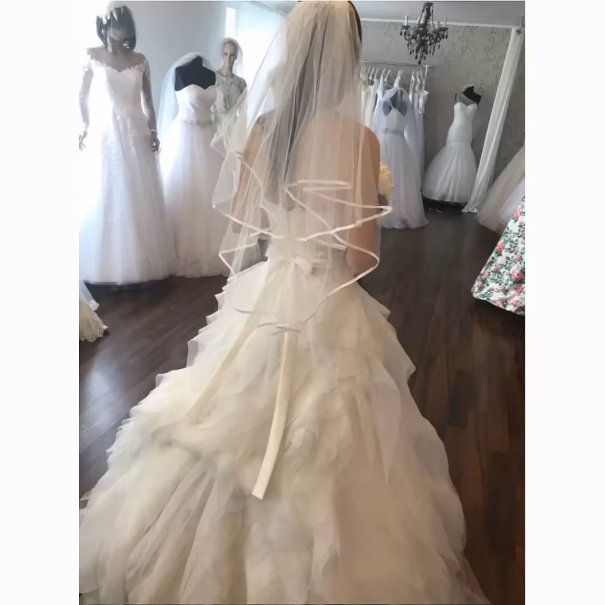 Voile de mariée spectaculaire, idéal pour les mariages de 2025, fabriqué en tulle fin de qualité supérieure, avec une finition élégante sur les bords. Ce voile blanc est spécialement conçu pour les mariées modernes qui souhaitent un accessoire raffiné et pratique.
