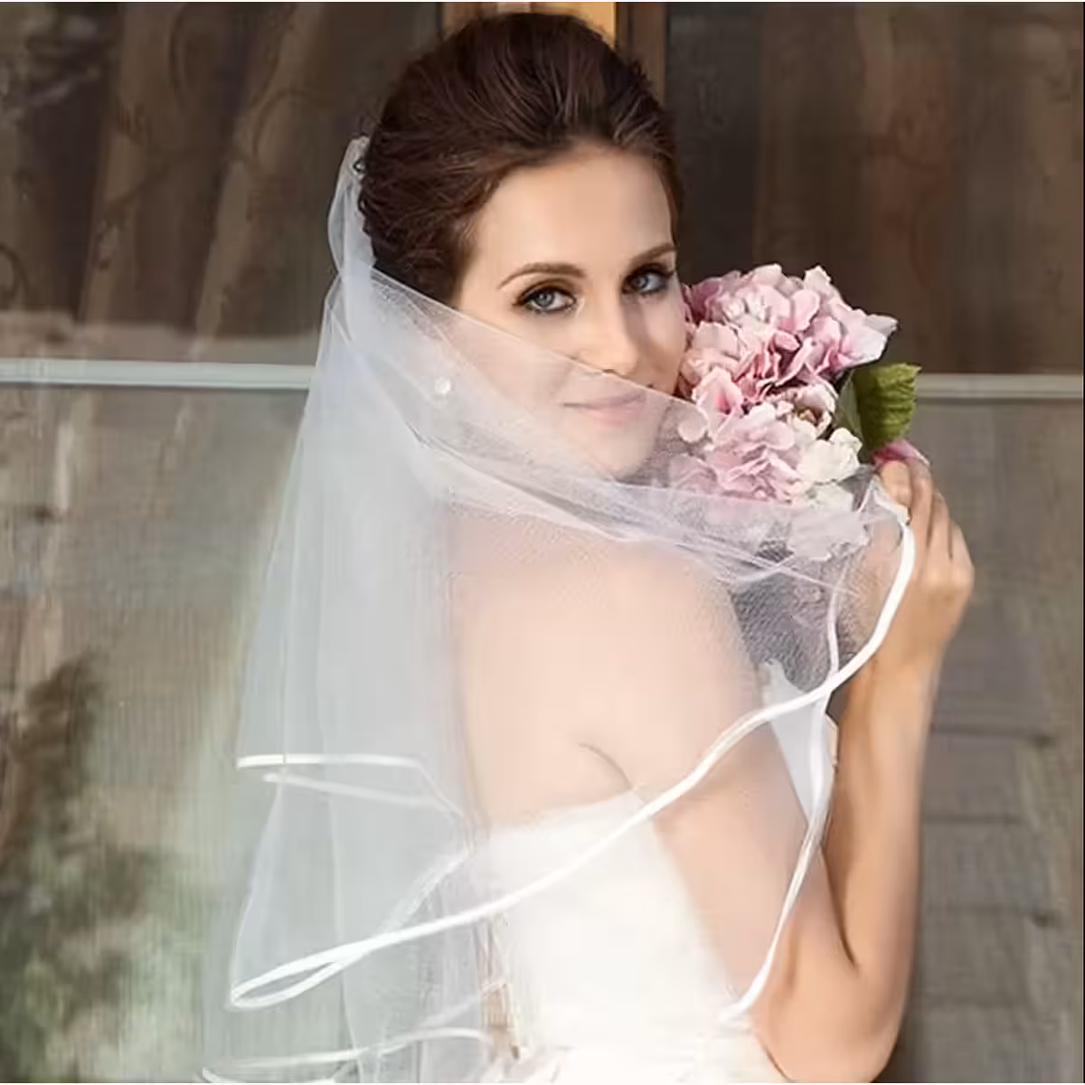 Voile de Mariée Blanc 2025 avec Peigne – Court, Moyen, en Tulle Fin